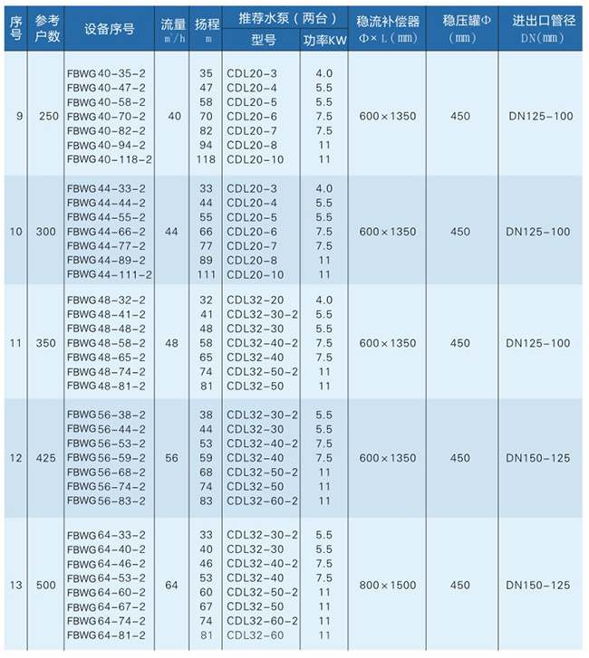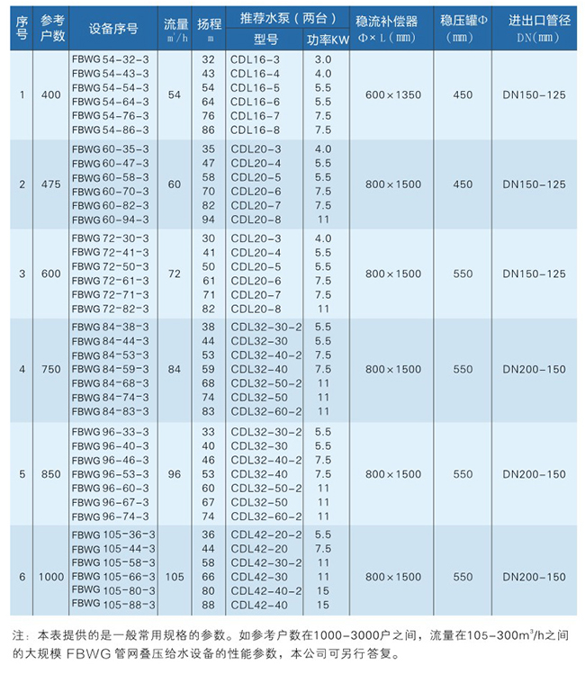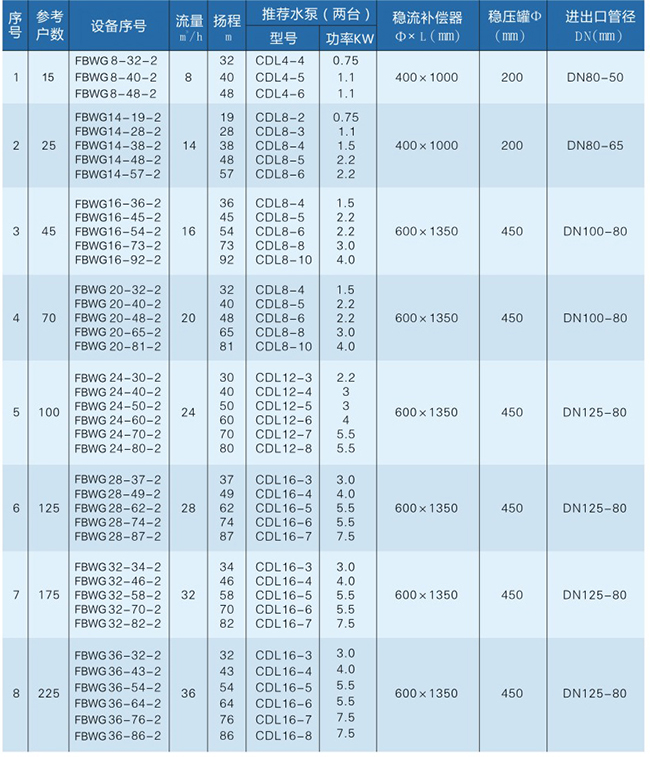 FBWG系列无负压变频供水设备是一种直接与自来水管网相接的供水设备做到差多少压力补多少压力,即叠加了自来水压力还减少了投资成本。并且这种供水方式耗能少,设备运行费用低综合节能40%以上.